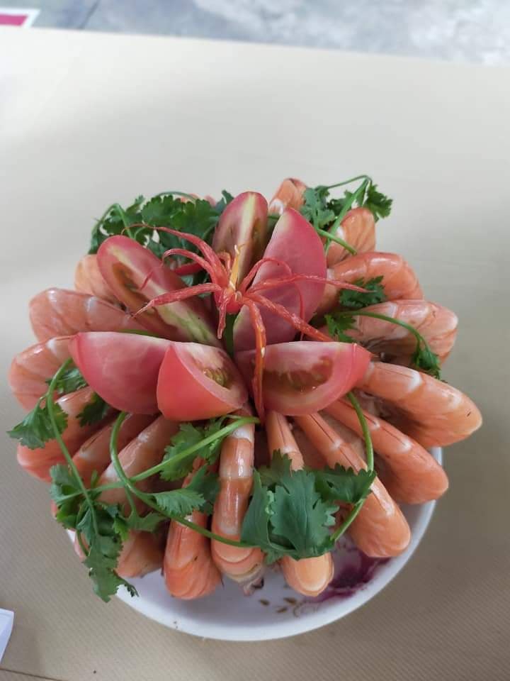 Canh: Rau tần ô, tôm khô, thịt heo.